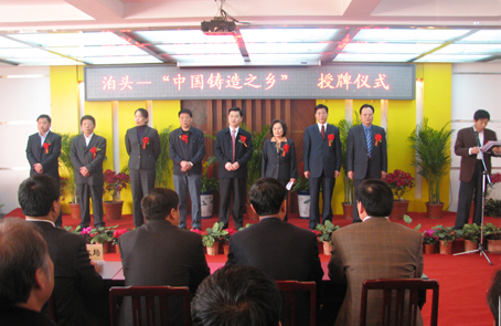 2010年4月24日上午中國鑄造協會為 “中國鑄造之鄉”——泊頭授牌儀式在泊頭市工業區舉行。中國鑄造協會執行副理事長邵瑛和泊頭市長謝榮珂共同為泊頭——“中國鑄造之鄉”揭牌。授牌儀式由泊頭市委常委、副市長王志強主持。